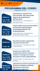 Nuova edizione completa e aggiornata del corso tutor per dsa, adhd, autismo.